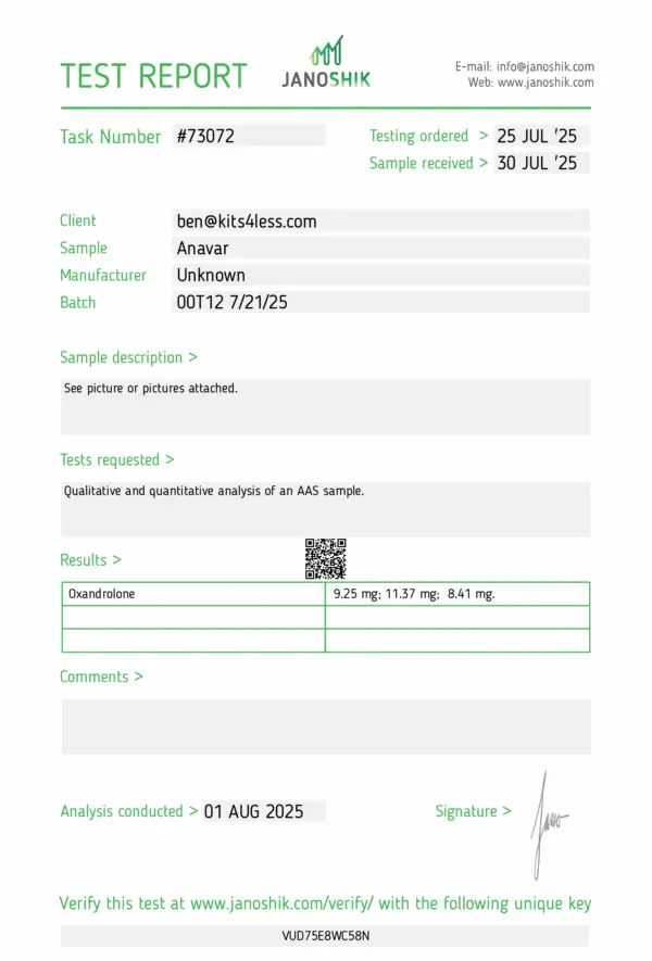 Anavar (Oxandrolone) is a mild, well-tolerated oral anabolic steroid known for promoting lean muscle development, strength gains, and a tight, refined physique — with minimal water retention or androgenic side effects. Due to its low androgenicity and favorable safety profile at lower doses, Anavar is a popular choice for both men and women, especially during cutting phases, recomposition protocols, or performance-enhancement cycles where a clean, dry look is desired.