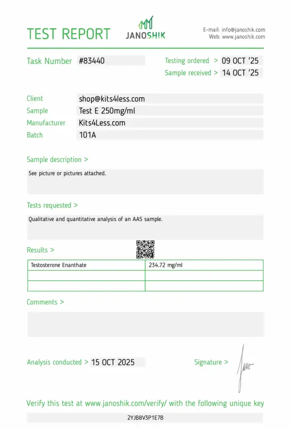 Testosterone Enanthate is a long-acting injectable form of testosterone, designed for sustained release and stable serum concentrations.