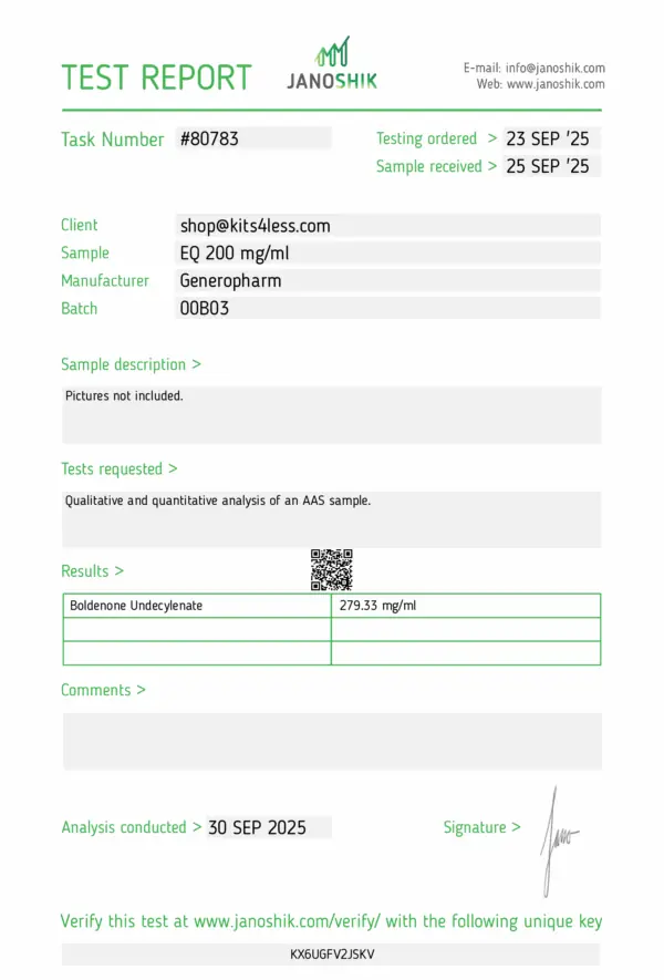 Boldenone Undecylenate, known as Equipoise (EQ), is a long-acting injectable anabolic steroid valued for its ability to promote steady lean muscle growth, increased appetite, and enhanced vascularity. With a mild androgenic profile and extended half-life, it is commonly used in longer bulking or recomp cycles.