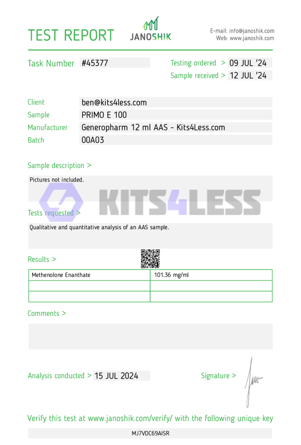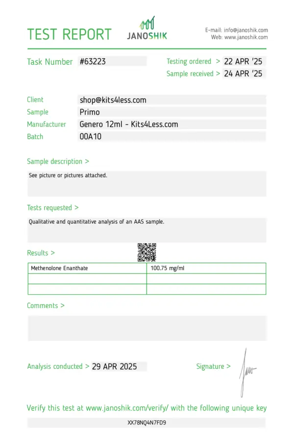 Primobolan Enanthate (Methenolone Enanthate) is a long-acting injectable anabolic steroid derived from dihydrotestosterone (DHT). Known for its extremely low androgenic activity and lack of estrogenic effects, Primo is favored for its clean, lean muscle gains, excellent tolerability, and favorable cosmetic outcomes, especially during cutting or recomp cycles.