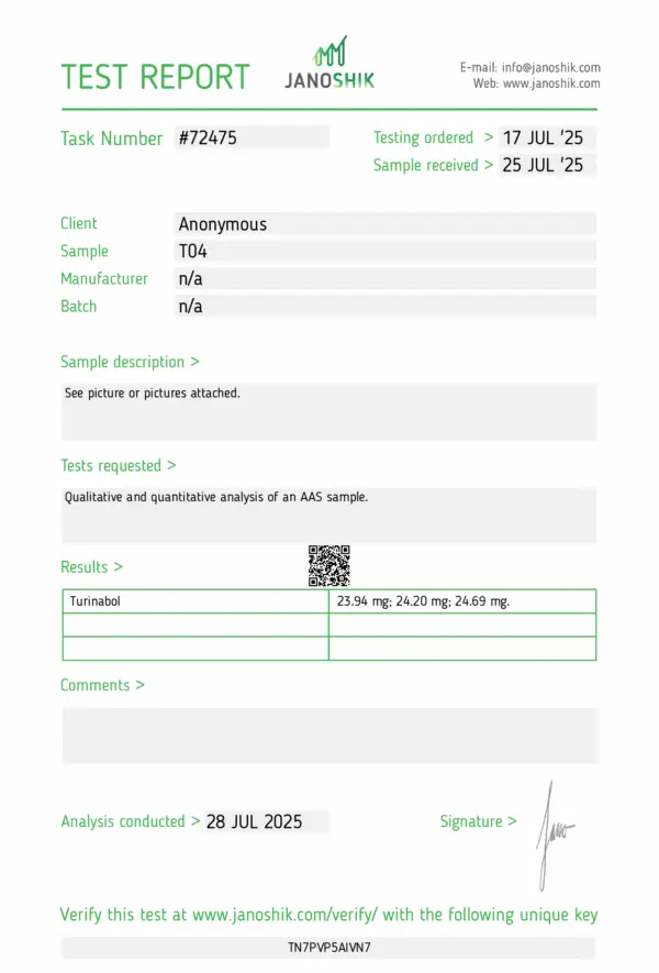Each tablet contains 25mg of Turinabol, offering a convenient, moderate-strength dose for flexible use in standalone or stacked protocols.